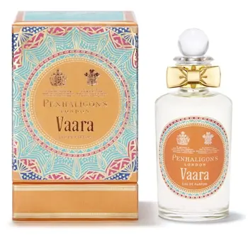 Vaara Penhaligon's - восточный, унисекс аромат от Penhaligon's, создан 2013, , Англия. Духи Vaara имеют ольфакторную пирамиду, основанную на нотах: шафран, кориандр, семена моркови, розовая вода, айва, роза, пион, магнолия, фрезия белая, бобы Тонка, мед, бензоин, сандаловое дерево, мускус белый. Вы можете купить парфюм Penhaligon's Vaara в концентрации парфюмированная вода.