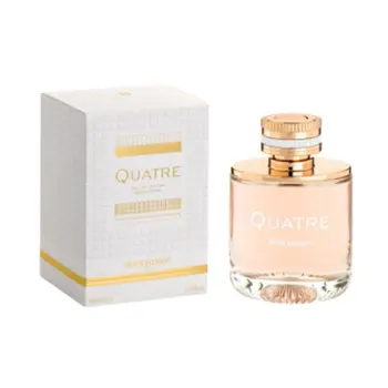 Quatre Boucheron - цветочный, фруктовый, женский аромат от Boucheron, создан 2015, Nathalie Gracia-Cetto, Nadege Le Garlantezec, Antoine Maisondieu, Франция. Духи Quatre имеют ольфакторную пирамиду, основанную на нотах: грейпфрут, апельсин, лимон, Танжерин, яблоко, жасмин, персик, роза, клубника, карамель, кашемир, ваниль, белый мускус, белый кедр. Вы можете купить парфюм Boucheron Quatre в концентрации парфюмированная вода.
